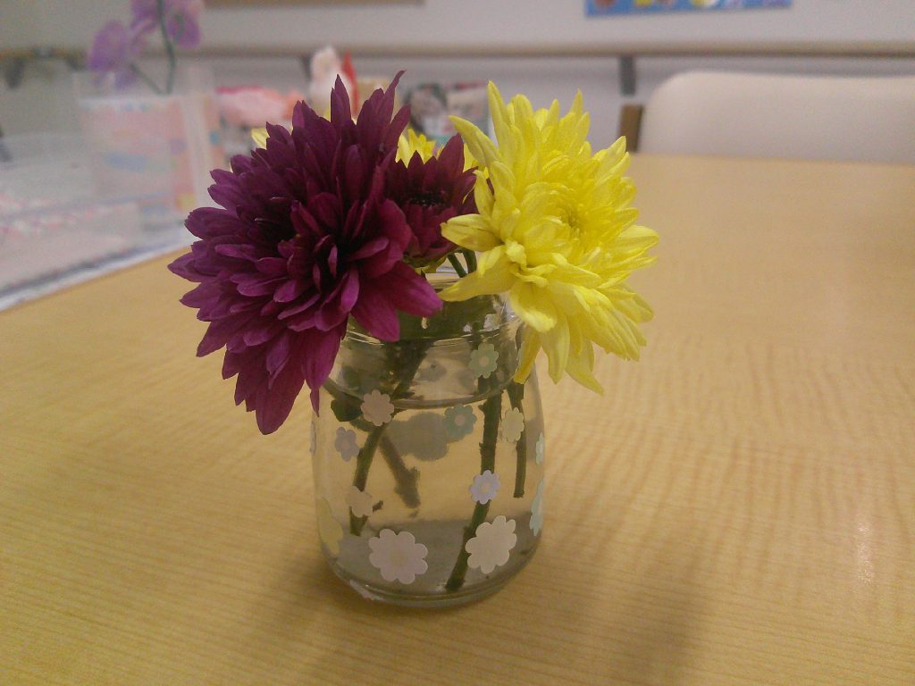 テーブルの上に綺麗な花が😊冬でも、なないろの外には綺麗な花がたくさんありますのでまたご紹介させていただきます✨