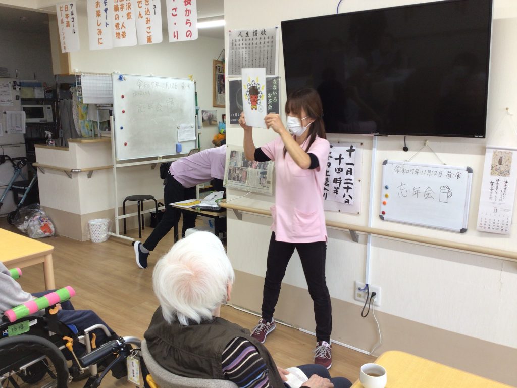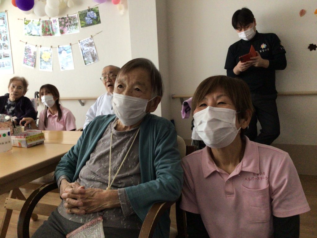 『あそこ行ったなぁ』『あれしたなぁ』『今年のことやのに懐かしいわ~』などとお話しながら、ご自身の写真が写し出されると恥ずかしそうにされる方もおられました😊職員も一緒に楽しく振り返りさせていただきました♡