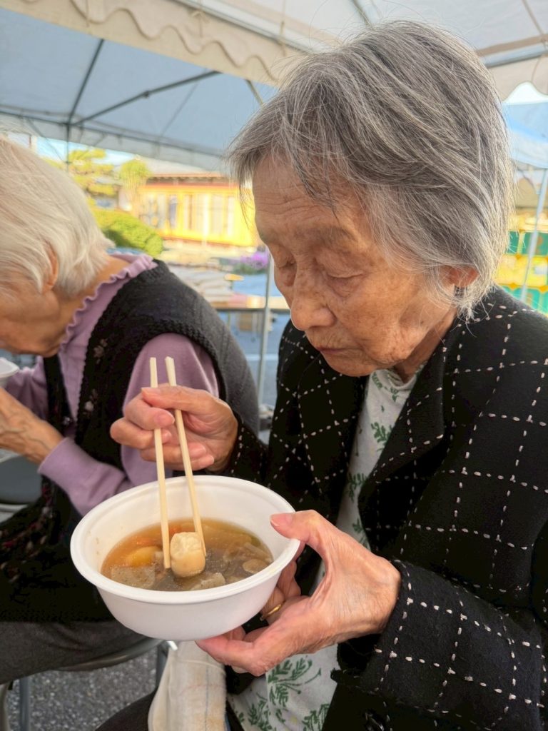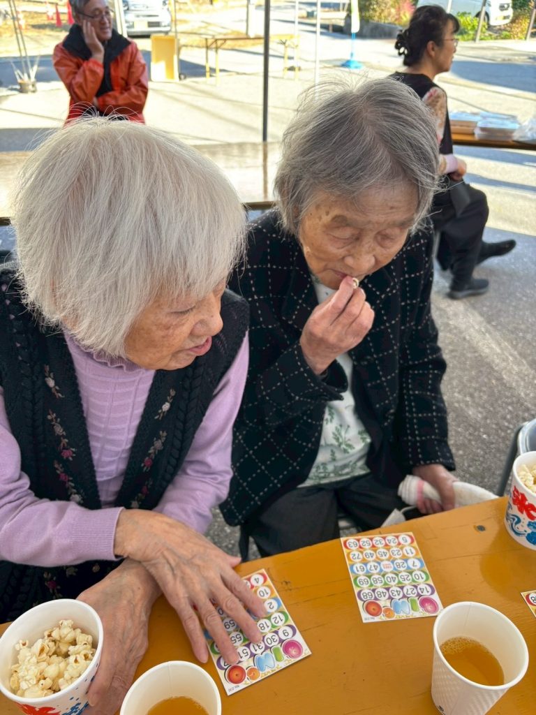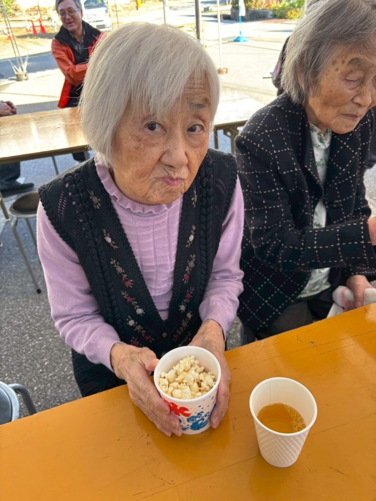 綿菓子やポップコーン、大きいお鍋で作っておかれた具沢山の芋煮をごちそうになり『美味しいわ!』『もうお腹いっぱいでご飯食べれへんで~』と会話も弾んでいました🎵ビンゴ大会にも参加させて頂き楽しい時間が過ごせました✨