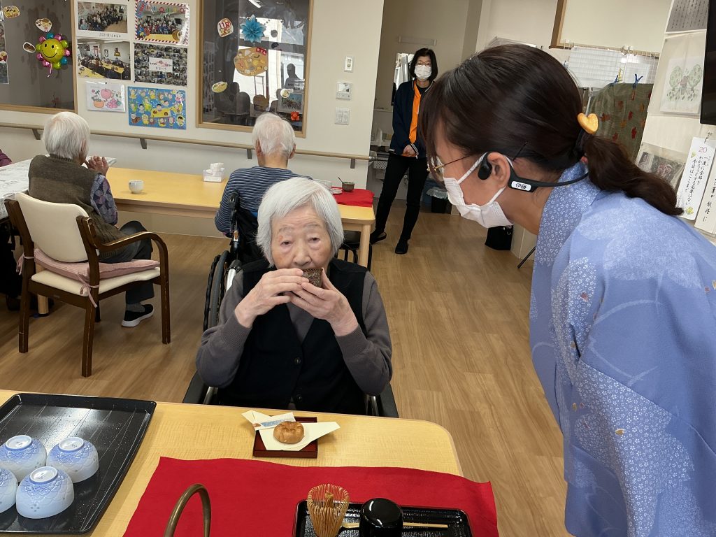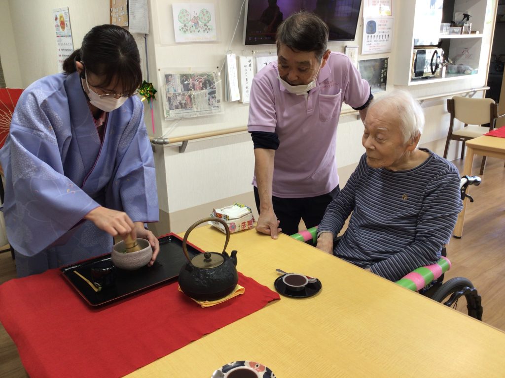 お茶をたてている様子をみなさん見入っておられ、スタッフは緊張したそうです😅