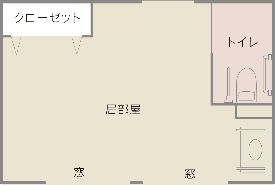 間取りはワンルームなり、明るい室内でトイレ付のサービス付き高齢者住宅です。