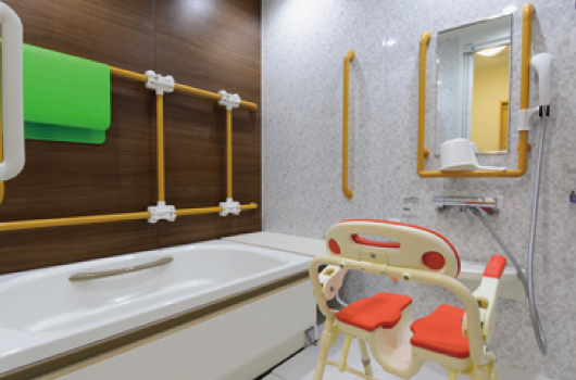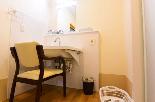 車イスからの移乗や介助がしやすく、コンパクトな器具配置にて余裕のある空間です。