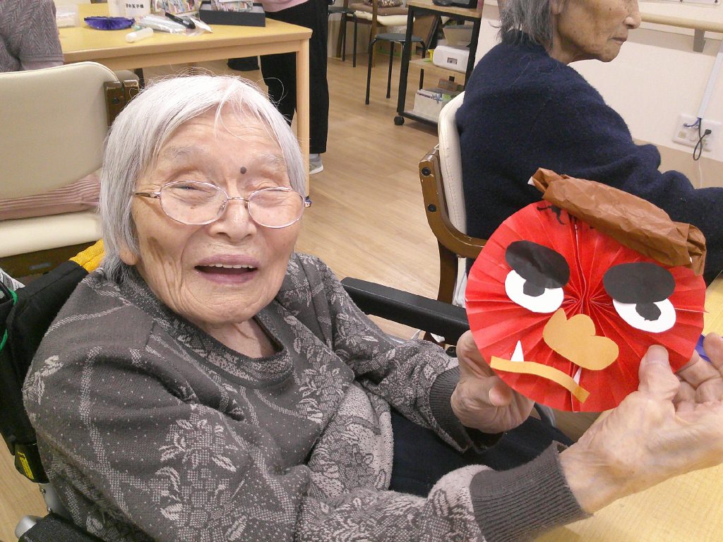 飾り作り👹 2026.02.5 ブログ, 日常 食堂に飾らせていただいてます鬼の飾り作りの様子です😊 スタッフの説明を聞きながら頑張って作ってくださいました😉 完成した鬼の飾りで記念撮影📷 色々な顔の鬼が完成しました👹 たくさん作って下さったので賑やかな食堂になりました✨ みなさんのおかげで素敵な飾りが完成しました🎵来月の飾りもみなさんと頑張って作れたらと思います😊 リヴェールなないろstaff・小澤 Share ブログ, 日常 おやつ時間のひととき🎵前の記事