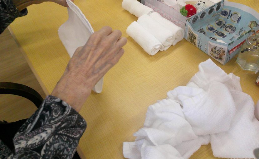 朝からみなさんでおしぼり畳みのお手伝いありがとうございます😊