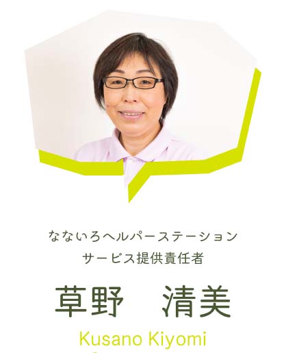 入居者様が安心してリヴェールなないろで生活していただけるよう、24時間体制で介護・家事サービスを提供しております。また、在宅での生活を送られている、ご利用者様への訪問もさせていただいております。全てのご利用者様の「幸せ」を信念に、丁寧で思いやりのある関わりを心がけ、ご利用者様だけでなく、ご家族様にも安心していただけるよう努めて参ります。
